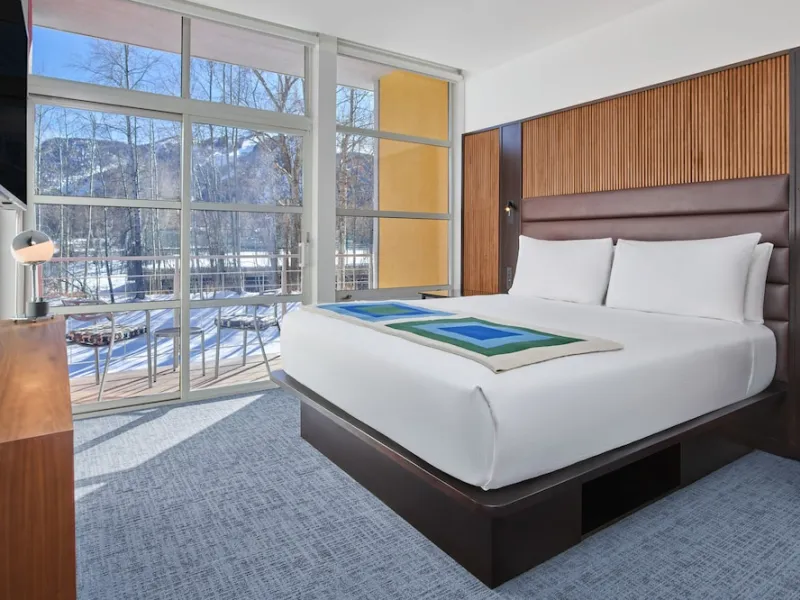 Encompassing 40 acres of snowy space, Aspen Meadows is far from your typical ski resort. Rather than kitschy ski-lodge style, this massive resort boasts bright and modern decor. Expansive windows let a lot of light into the guest rooms, which are decked out in neutral hues (with pops of color here and there), kitchenettes, flat-panel TVs and complimentary high-speed Internet access. Private balconies and patios boast views of the Rockies; you can also enjoy the scenery from a poolside lounge chair or from the patios of the on-site Plato's and Meadows restaurants. Aside from the location and spacious rooms (starting at 500 square feet), recent guests say the superb customer service is the top reason to stay here.