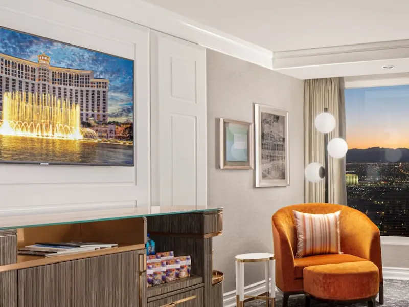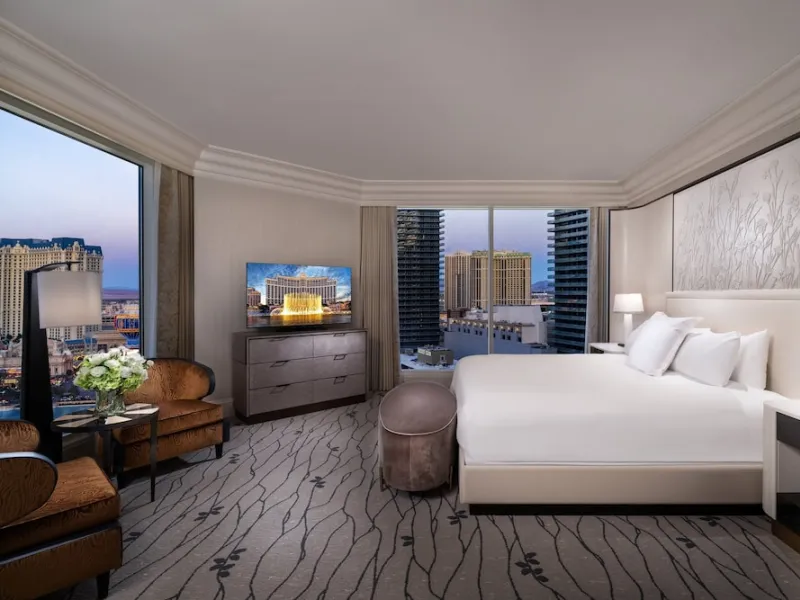 Accommodations at the Bellagio are spacious and vary in decor depending on the room category. Standard rooms feature flat-screen TVs, iHome docking stations, stocked minibars and Italian marble bathrooms that come outfitted with separate soaking tubs and glass showers. Wi-Fi access is included in the daily resort fee. Guests can choose from rooms with a view of the fountains or the resort. Nightly resort fee: $55. Standard room size: 510 square feet. Premium channels, workspace/desk, bathrobes/slippers, minibar, separate shower, separate tub, internet, wireless internet, free internet.