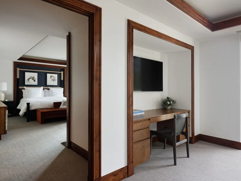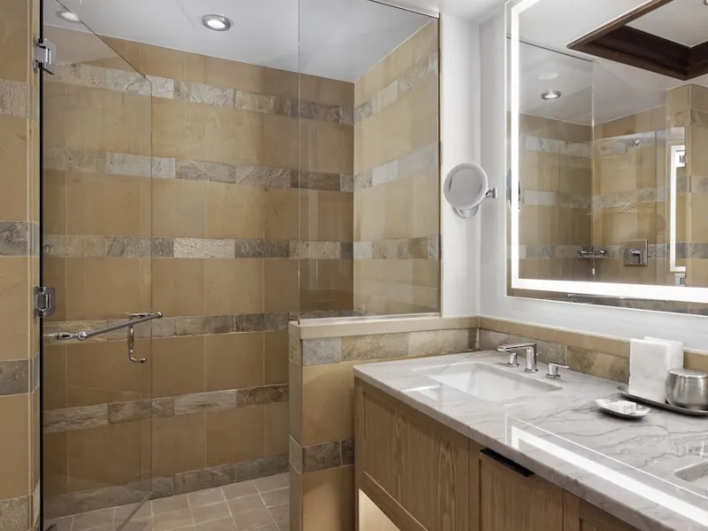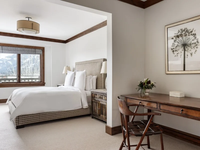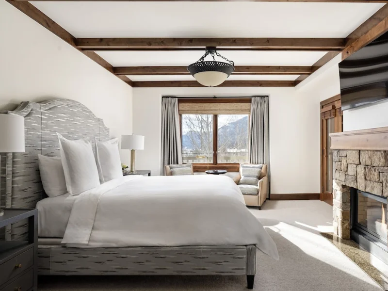 Accommodations at the Four Seasons Resort Jackson Hole aim to make guests feel as if they have walked into their own private ski cabin. Rooms are equipped with a fireplace, private balcony and marble bathroom. The decor includes dark wood furniture, brown leather upholstery and artwork reflective of the great outdoors. Hypoallergenic bedding, humidifiers and air ionizer are available. In-room Wi-Fi is free for up to two devices in the guest rooms and for up to five devices in the suites. Nightly resort fee: 10% of room rate. Standard room size: 500 square feet. Additional features include premium channels, workspace/desk, minifridge, bathrobes/slippers, minibar, separate shower, separate tub, internet, wireless internet, free internet, guest rooms with patios and balconies.