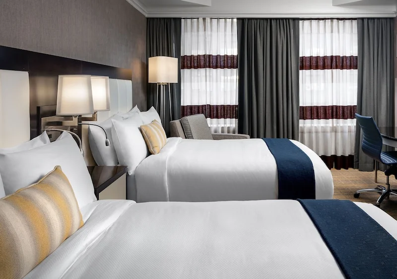Nestled in the Back Bay area, just a few blocks southwest of Boston Common, this landmark hotel boasts striking decor. Classic hardwood floors and sturdy stone fireplaces neighbor illuminated glass stairs adorned with silvery banisters, while marble foyers are garnished with contemporary artwork. Recent visitors describe the Loews Boston Hotel as nothing short of beautiful. And according to guests, the hotel's spacious accommodations, appointed with polliw-top mattresses, complimentary wireless Internet access, LED Smart TVs and Keurig coffee makers are just as polished. And there's plenty to look forward to in terms of dining: the Precinct Kitchen + Bar dishes out tasty New England seafood and crafty cocktails.