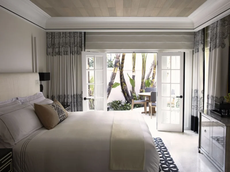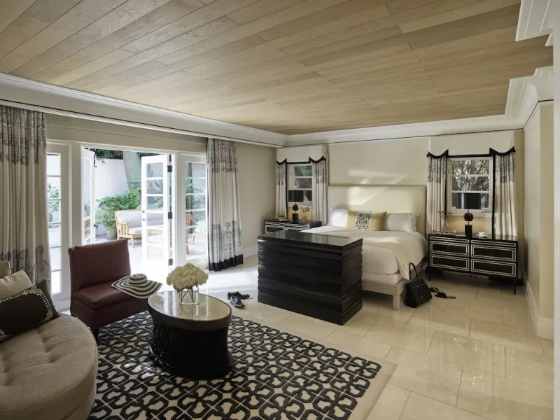 Old Hollywood Glamor inspires guest rooms, which feature contemporary yet cozy decor, offering up cream, black and white color palettes. The marble bathrooms offer natural wood ceilings, heated limestone floors and a spa tub with built-in TV. Other amenities include Egyptian bed linens, flat-screen TVs and in-room iPads to order room service. Most rooms open directly onto gardens and are entered from external walkways. Some rooms feature patios. Standard room size: 430 square feet. Premium channels, workspace/desk, bathrobes/slippers, separate shower, separate tub, internet, wireless internet, free internet, guest rooms with patios and balconies, adjoining rooms available.