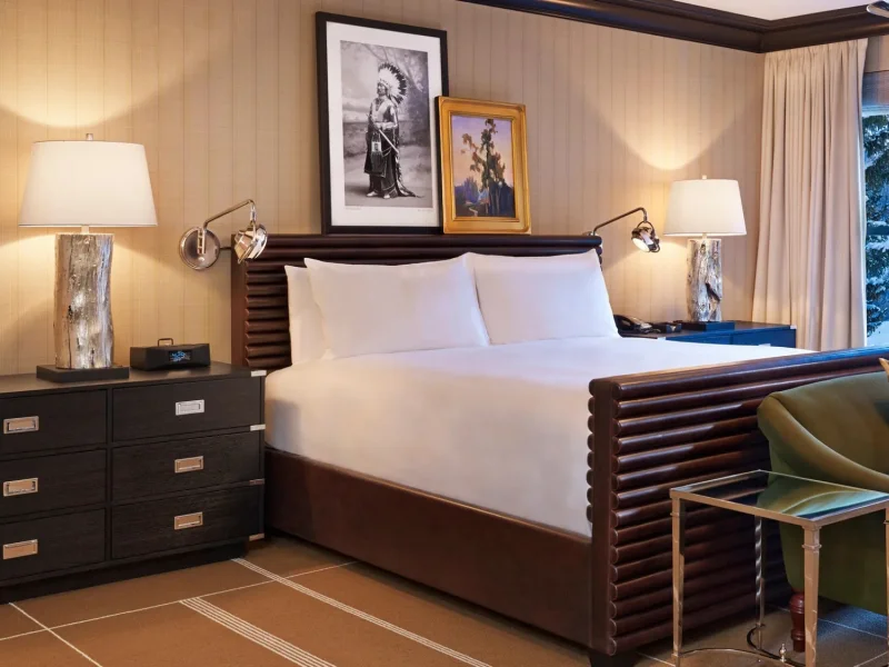 The rooms and suites share an elegant take on Western and rustic design. Town or mountain views add to the charm of this historic hotel, and accommodations are equipped with iPads, flat-screen TVs and minibars with complimentary drinks. Bathrooms feature separate bathtubs and walk-in showers, Hermes amenities and dual-sink vanities. Poolside suites are available in the Junior Suite category. Nightly resort fee: $60. Standard room size: 525 square feet. Premium channels, workspace/desk, minifridge, bathrobes/slippers, minibar, separate shower, separate tub, internet, wireless internet, free internet are provided. Guest rooms with patios and balconies and adjoining rooms available are not available.