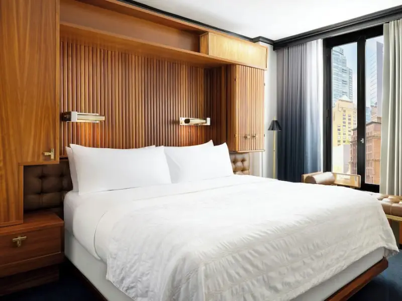 Recent guests said this hotel's location, staff and design blew them out of the water. Many visitors especially loved the modern common areas and smartly decorated rooms. In particular, guests enjoyed the comfortable beds, in-room work desks, flat-screen TVs and trendy tiled bathrooms. While some guests complained that their rooms were a bit small, most agreed that they were cozy and quiet despite the hotel's location at busy West 57th Street and Sixth Avenue in midtown Manhattan. You can nab a great view of all the action from this hotel's lounge and outdoor terrace, The Roof, which serves up cocktails and light fare. And for a more substantial meal, slide into a leather booth at Kingside Restaurant for an eclectic menu of new American cuisine and regional brews. Best of all,
