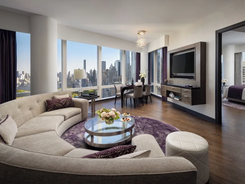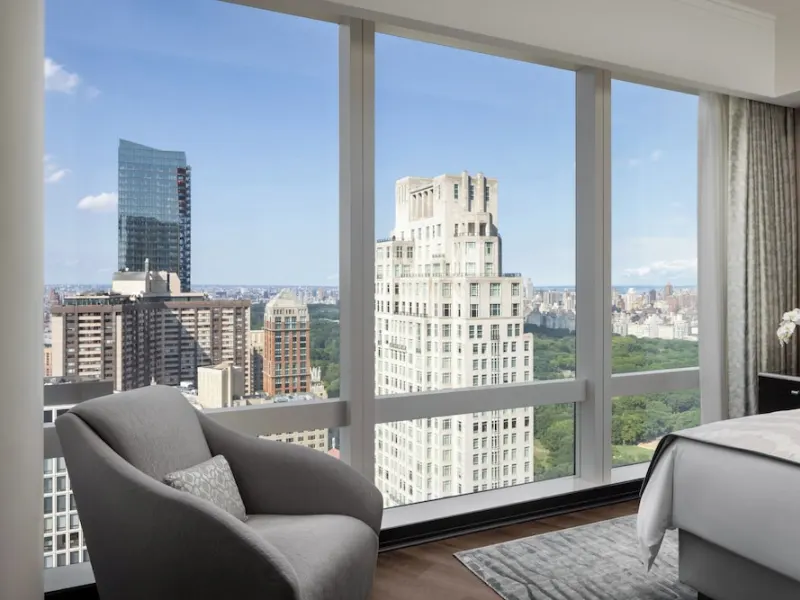 In 2023, Mandarin Oriental, New York marks 20 years since it first opened its doors. Conveniently located on New York City’s Columbus Circle, this hotel is steps away from Central Park, shopping the subway. You'll find the lobby of this Asian-inspired luxury hotel on the 35th floor of the Deutsche Bank Center. From there, you can ascend to one of the 244 rooms and suites known for their impressive decor. Each of the accommodations – which recent guests describe as "luxury in the sky" – comes appointed with high-end amenities, such as goose-down bedding, Italian linens, complimentary bottled water, yoga mats and bathroom TVs. Every room features floor-to-ceiling windows, with many rooms and suites offering sweeping views of Central Park. For rooms that don’t have a Central Park view, make time to have a beverage or meal at MO Lounge, adjacent to the main lobby, to enjoy the scenery. The wellness area is another matter altogether: Covering 14,500 square feet, it has a much-acclaimed lap pool, and lodgers rave over the natural spa treatments.