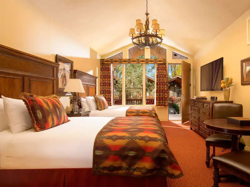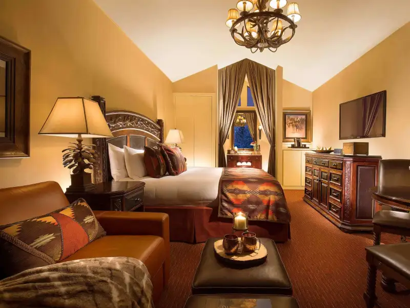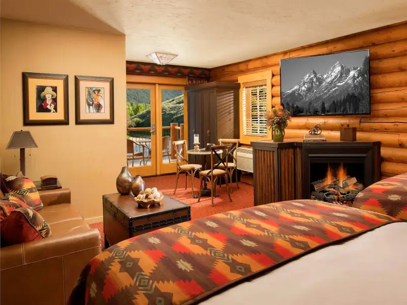 Grand Teton National Park. On the 12-acre property, you'll find cozy, Western-themed rooms, suites and cabins featuring double pillow-top mattresses, natural fiber linens and bathrobes, flat-screen TVs with DirecTV, and Molton Brown toiletries. Select accommodations add perks like fireplaces and private patios, while multibedroom Spa Suites offer butlers, a lobby with a private bar and private backyards with seasonal fire pits. Outside of your room, enjoy a sauna, a state-of-the-art fitness center with floor-to-ceiling windows, and an outdoor pool and hot tub (all open year-round). There's also a 7-acre nature preserve where guests can walk trails, sit by an outdoor fire pit and fish. The Spa at Rustic Inn features several treatment rooms (including a couple's massage room), a eucalyptus steam room and an outdoor fireside hot tub. Travelers can enjoy fine dining in a casual setting at the Rustic Inn Bar & Bistro. While guests appreciate the many amenities the resort has to offer, they lament that the restaurant and bar are only open seasonally.