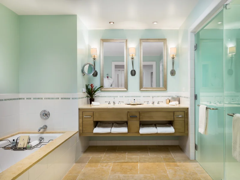 Standard guest rooms at Terranea Resort are spacious at 450 square feet and feature neutral color palettes and wood furnishings. Standard guest rooms come outfitted with pillow-top mattresses, flat-screen TVs, and balconies or patios that overlook the resort's grounds or the ocean (both partial and full ocean views available). Daily resort fee includes two complimentary bottles of water at check-in, in-room coffee and tea, pool and beach service, and more. Nightly resort fee: $67-$85 (depending on room type). Standard room size: 450 square feet. Premium channels, workspace/desk, separate shower, separate tub, internet, wireless internet, free internet, guest rooms with patios and balconies.