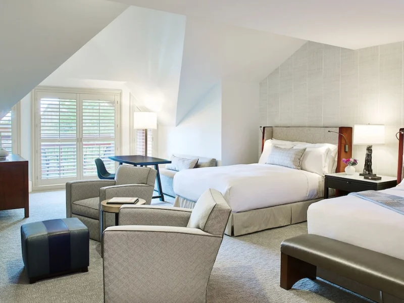 The Little Nell’s guest rooms combine modern decor with Aspen style, featuring wood accents and sleek gas fireplaces. Guest rooms have flat-screen TVs with on-demand videos, fully stocked refreshment bars and wool carpeting. Bathrooms have steam showers, separate soaking tubs and stone vanities, along with heated marble walls and flooring. In-room Bluetooth speaker. Nightly resort fee: 7% of room rate. Standard room size: 600 square feet. Premium channels. Workspace/desk. Minifridge (not available). Bathrobes/slippers. Minibar. Shower/tub combo (not available). Separate shower. Separate tub. Internet. Wireless internet. Free internet. Fee for internet usage (not applicable). Guest rooms with patios and balconies. Adjoining rooms available.
