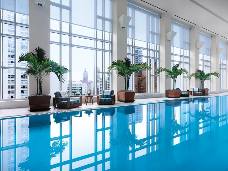 The Peninsula Chicago features a half Olympic-length indoor pool with plenty of space for swimming laps. An adjoining outdoor terrace is available for lounging during warm weather. Children younger than 16 must be accompanied by an adult in the pool area. Special family swim hours are offered, and the pool area also features a whirlpool. Additional amenities include poolside service and deck chairs or cabanas. Please note that some features such as wading pool, lazy river, family pool, infinity pool, adults-only pool, lifeguard on duty, and pool bar are not available.