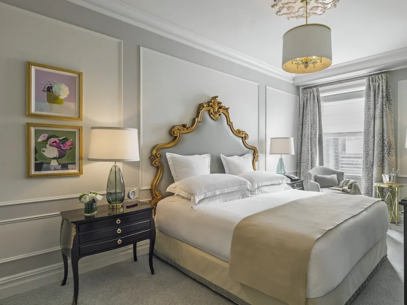 Starting at 475 square feet, standard rooms at The Plaza New York are huge by New York City standards – large enough for a seating area, a work desk and a king-sized bed. The Plaza rooms are decorated in a regal style with 24-carat gold-plated fixtures and marble tabletops in rooms and bathrooms. Most bathrooms have separate shower and tub. Wall-mounted flat-screen TV. Nightly resort fee: $65. Standard room size: 475 square feet. Premium channels, Workspace/desk, Minifridge, Bathrobes/slippers, Minibar, Separate shower, Separate tub, Wireless internet, Fee for internet usage, Adjoining rooms available.