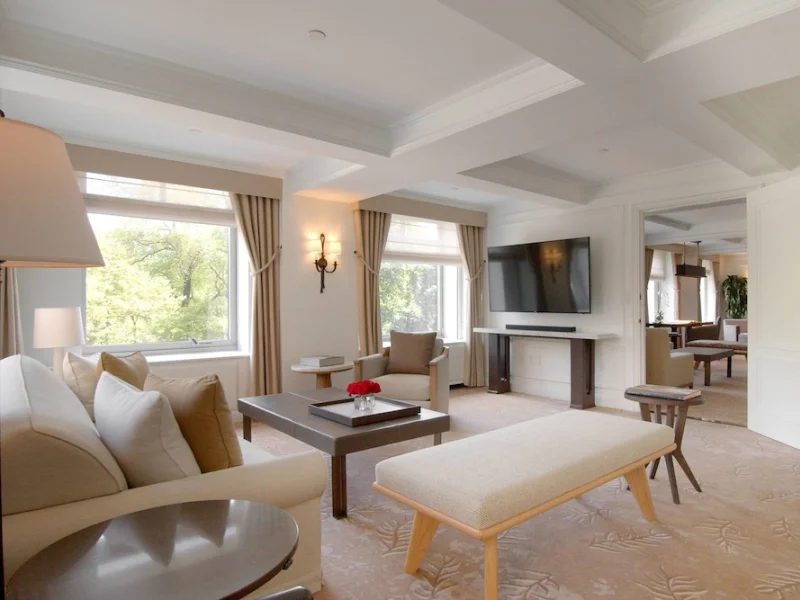 Standard guest rooms at The Ritz-Carlton New York, Central Park feature marble baths with soaking tubs, 400-thread-count linens and opulent decor. Some suites also have separate living or lounge areas and additional bathrooms. The Ritz-Carlton's guest rooms were renovated in 2018. Standard guest rooms are between 425 and 450 square feet. Rooms feature soundproof windows to block out city noise. Complimentary in-room Wi-Fi access for Marriott Bonvoy members; nonmembers must pay a daily fee. Guests staying in Club Level rooms have access to new Club Lounge with complimentary food and beverages daily. Standard room size: 425 square feet. Premium channels, workspace/desk, bathrobes/slippers, minibar, separate shower, separate tub, internet, wireless internet, fee for internet usage, adjoining rooms available.